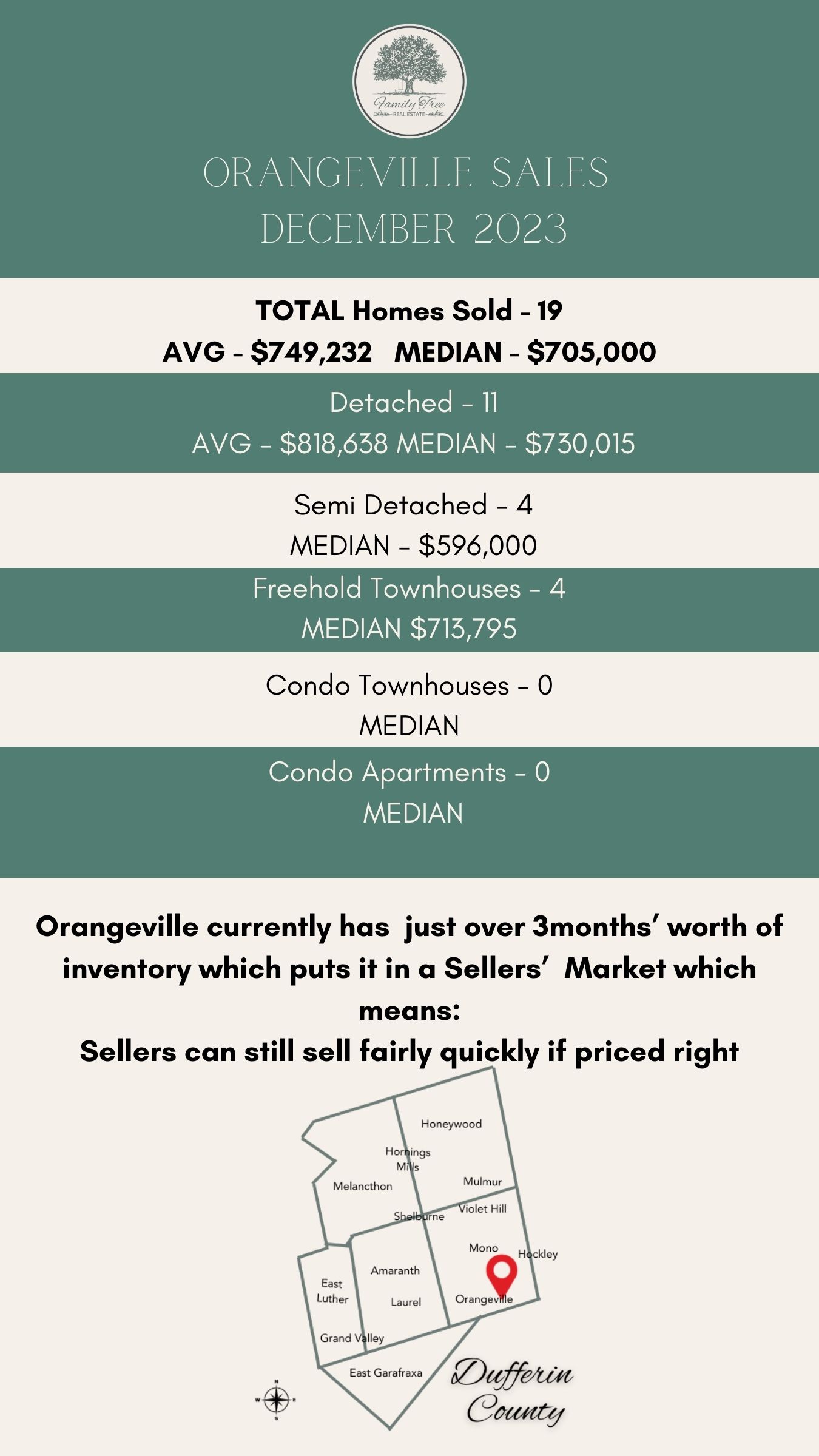 Orangeville Stats for December 2023 January 11, 2024 Keep in mind that December is always a slower month than any other in real estate.